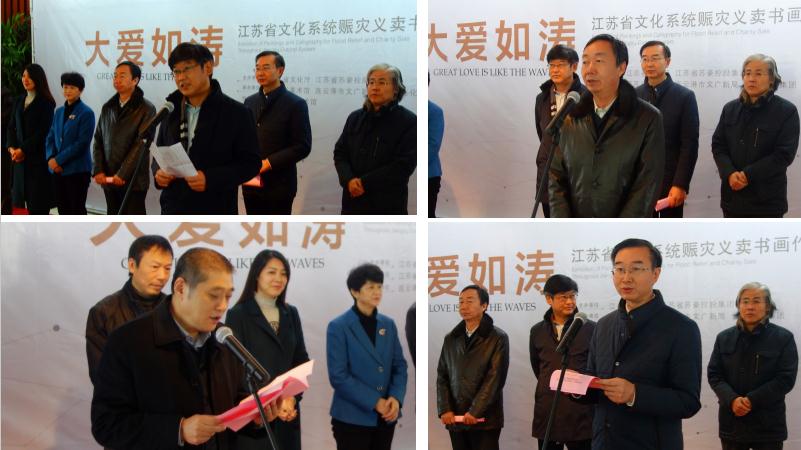 《大愛如濤——江蘇省文化系統(tǒng)賑災(zāi)義賣書畫作品展》被譽(yù)為是江蘇省文化工作者、文化企業(yè)共同譜寫的一曲擔(dān)當(dāng)奉獻(xiàn)的正氣歌。此次作品展是繼江蘇省美術(shù)館、鹽城市圖書館展覽之后的第三站。